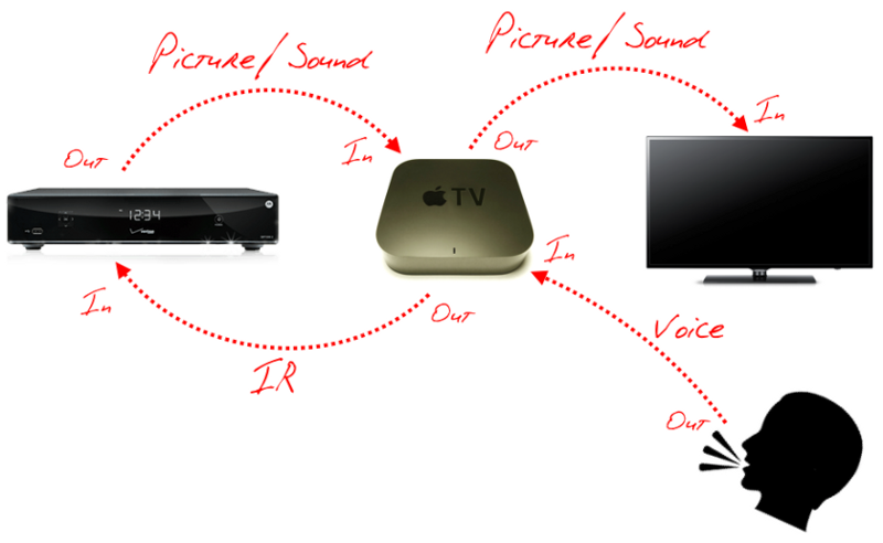 Now as far as controlling those other inputs, you would still need your other remotes. In a more unrealistic* scenario, Apple TV could somehow send an infrared signal back to your cable box to control it as a universal remote where you could do basic functions like channel #s, go up, down, left, right, etc. all through Siri. (*unrealistic because Apple would never do this)